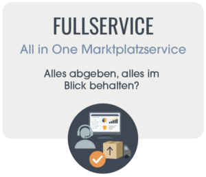 Solltest du mehrere Services benötigen oder deine Marktplatzaktivitäten vollständig abgeben wollen, lohnt sich ein Blick auf unseren Fullservice, bei dem wir alle Prozesse komplett für dich übernehmen.